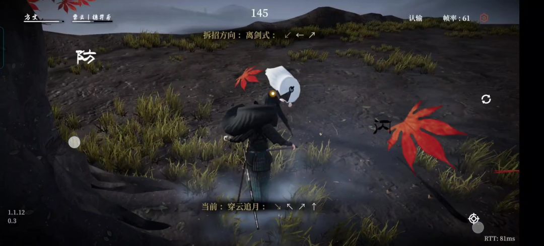 第一段是有一点小后撤、判定范围优秀的实招,前后摇的闪身取消窗口较大,可以方便地弹虚,后摇相对其他招,可以更快速的取消至移动/防御(可以快速地起防),但是基本无位移甚至带一点点后撤,所以用起来更偏向于防守