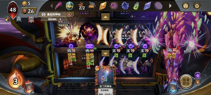 因为怕卡手牌,所以把但丁和噬影者都删了,没注意神邸前的守关BOSS是撕法术牌的勤勉天使,生产风险会被撕掉差点翻车重开,好在影裔造物好歹也是T0级,虽然没什么神器生产影裔配合,但也莽过去了。