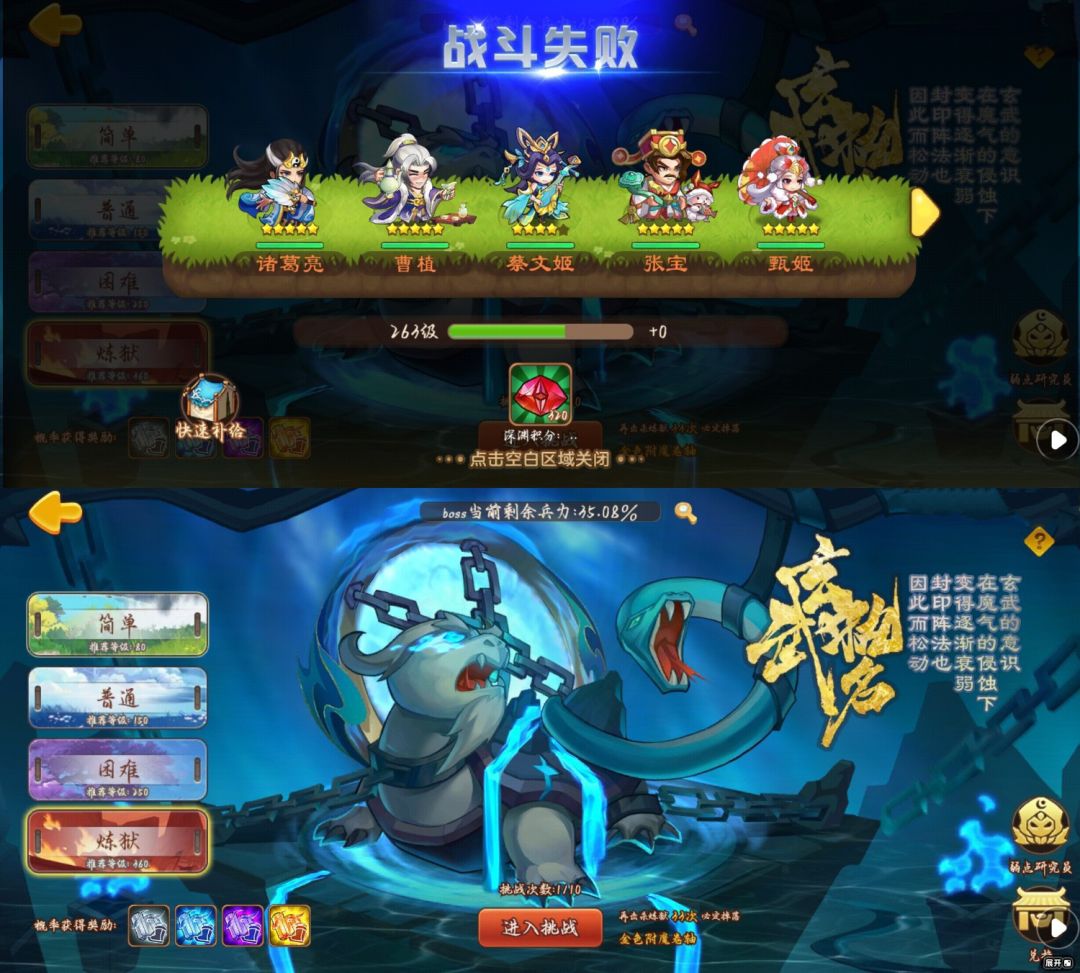 本人极致咸鱼,等级低装备好,目前263级。建议是不能两票就打困难。下面给了配置,可以进行对照,可看做两票需要达到的练度。本贴给出了诸葛亮啥时候放策略和普攻的安排以及融汇月枪和封穴月枪使用区别。