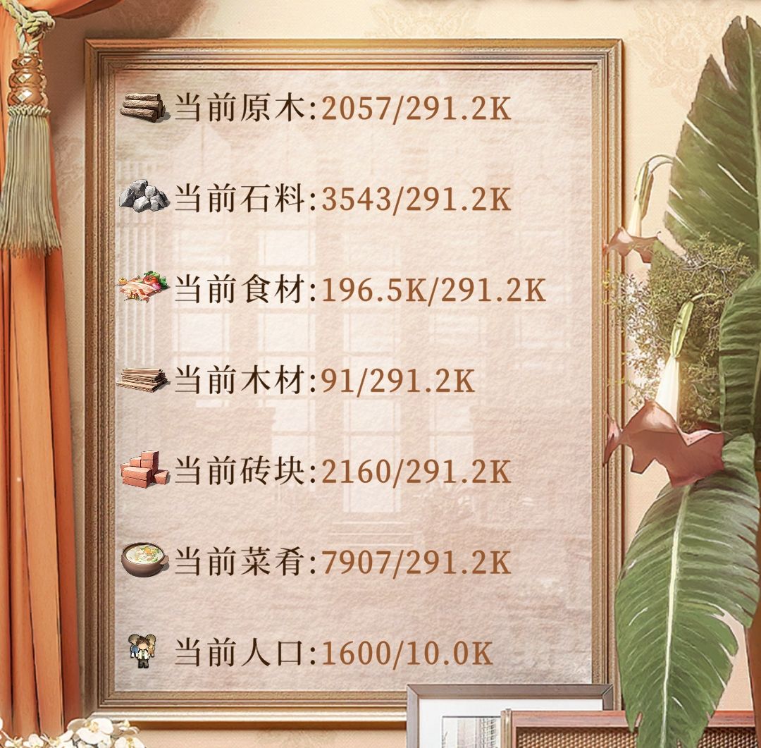 因为铺地皮不需要食材,升级需要少量食材,这个资源够用就行