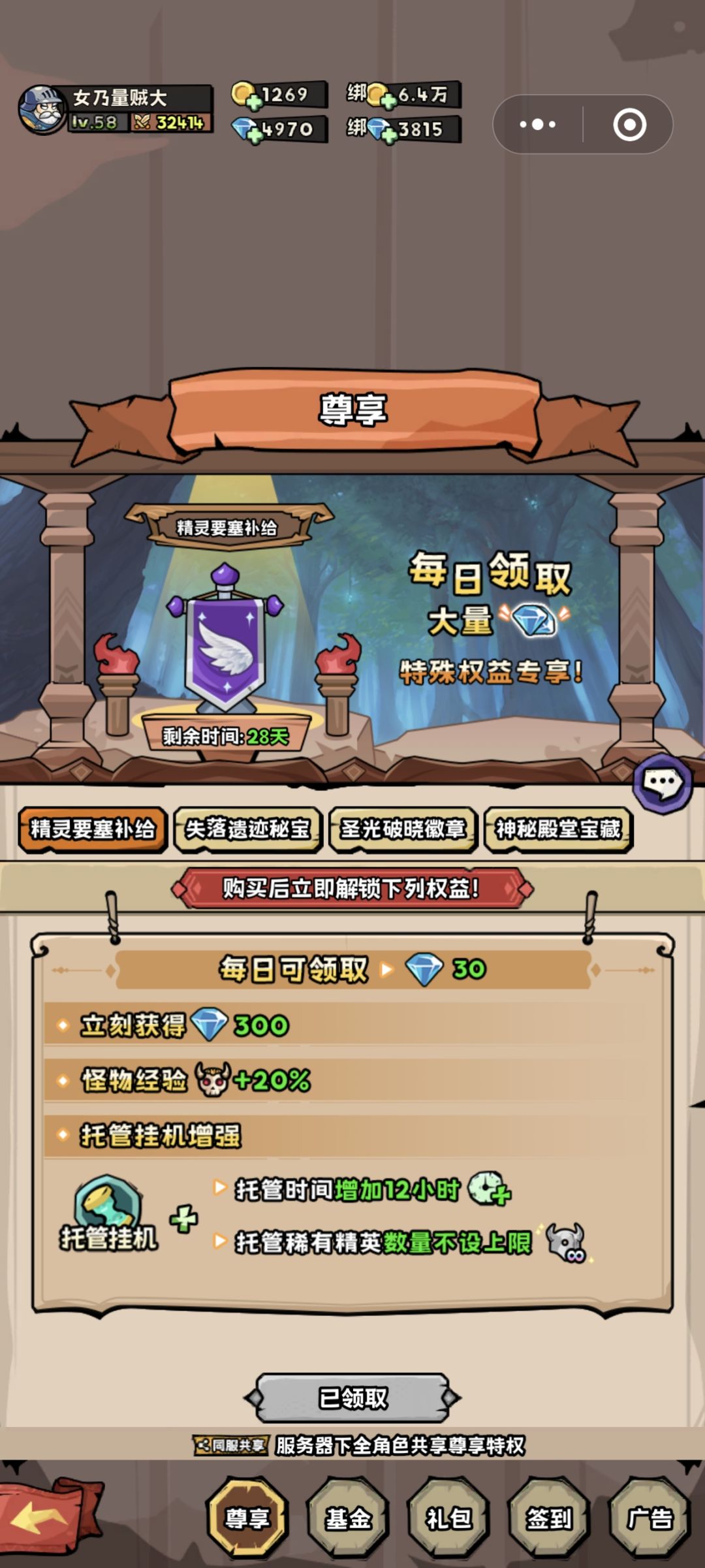 氪满:三周能到60。所以东西买买买。(个人表示很羡慕,但是金济实力不允许)