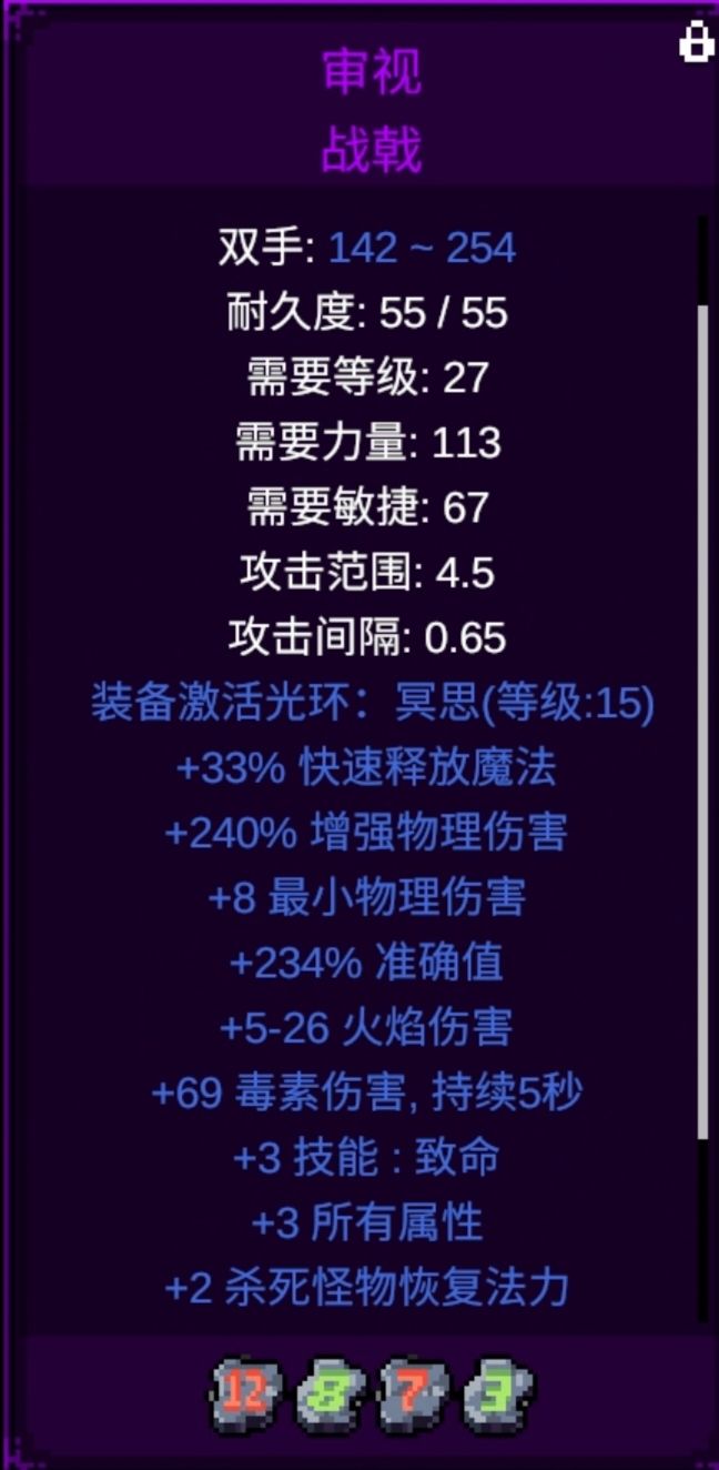 本来准备了很多不同的套装和想法,但是琢磨来琢磨去发现,战士近战挂这个图的唯一要求,其实只有一个,其他的都可以凑合,甚至都可以随便装装,只要武器有了这个审视,就能闭眼挂了