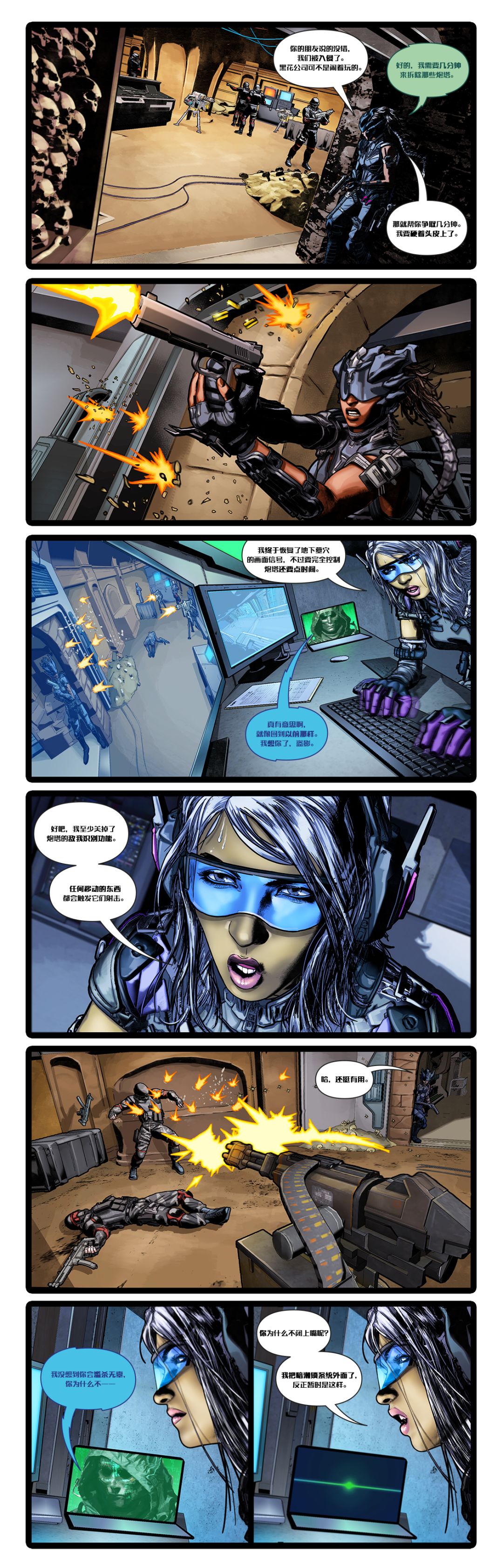 暗潮还会与盗影和吉娜索两人碰撞出怎样的火花?她们是否能重新夺回炮塔的控制权限扭转局势?敬请期待接下来的故事......