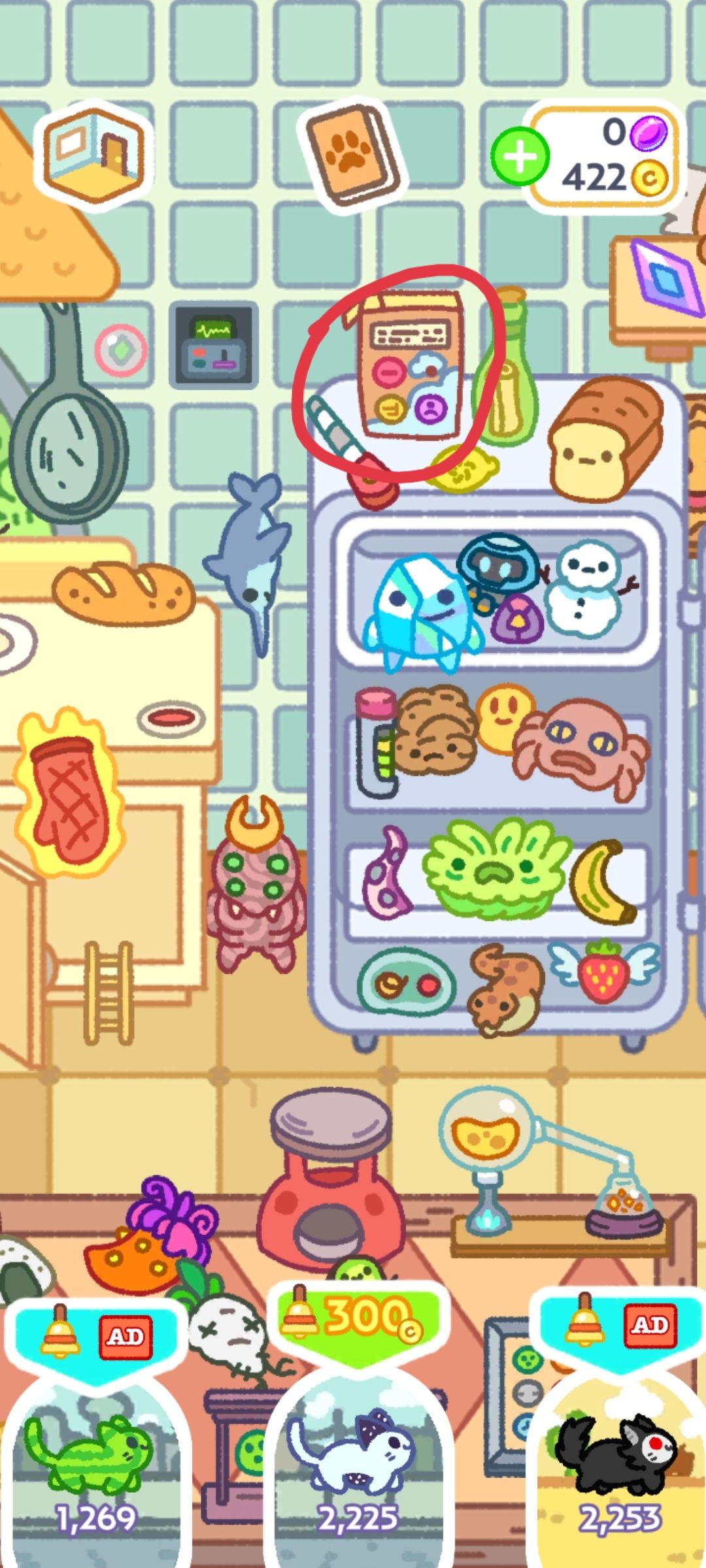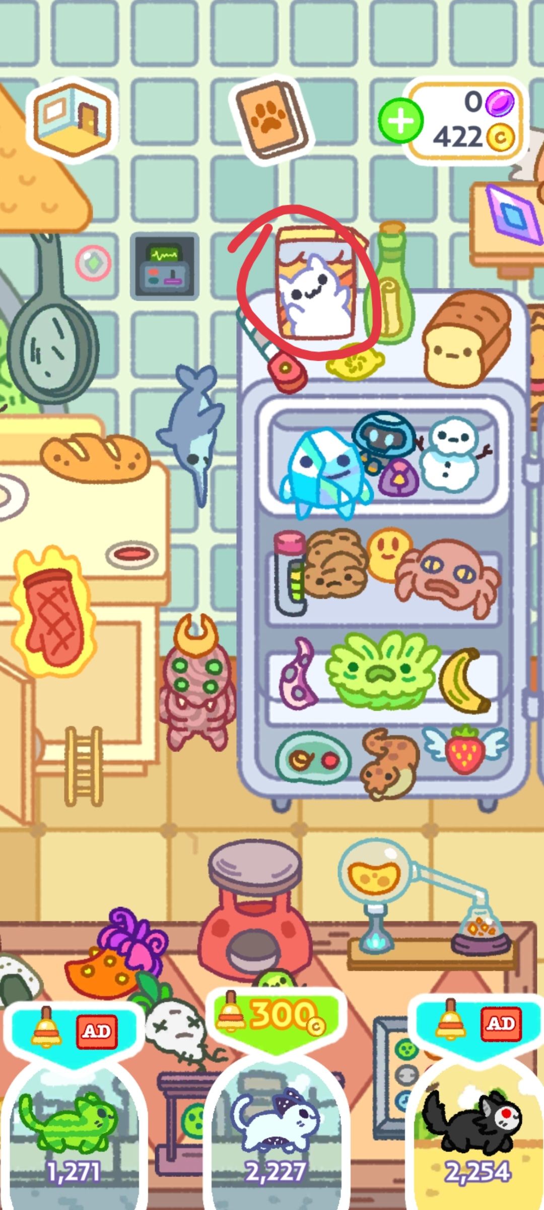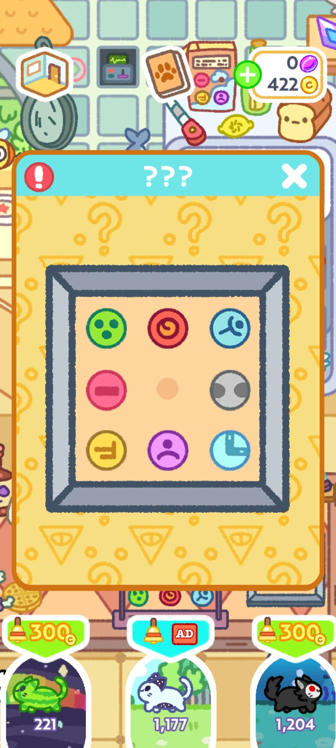 点击相框 猫粮 加上桌子上的标记 顶上有实心点就是空着的意思