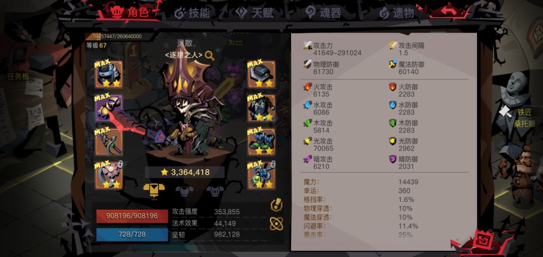 这属性肯定能过精英五,那么我凑一套不错的67大剑套,用大剑配目前的星痕符石再加附个魔,也应该能过精六