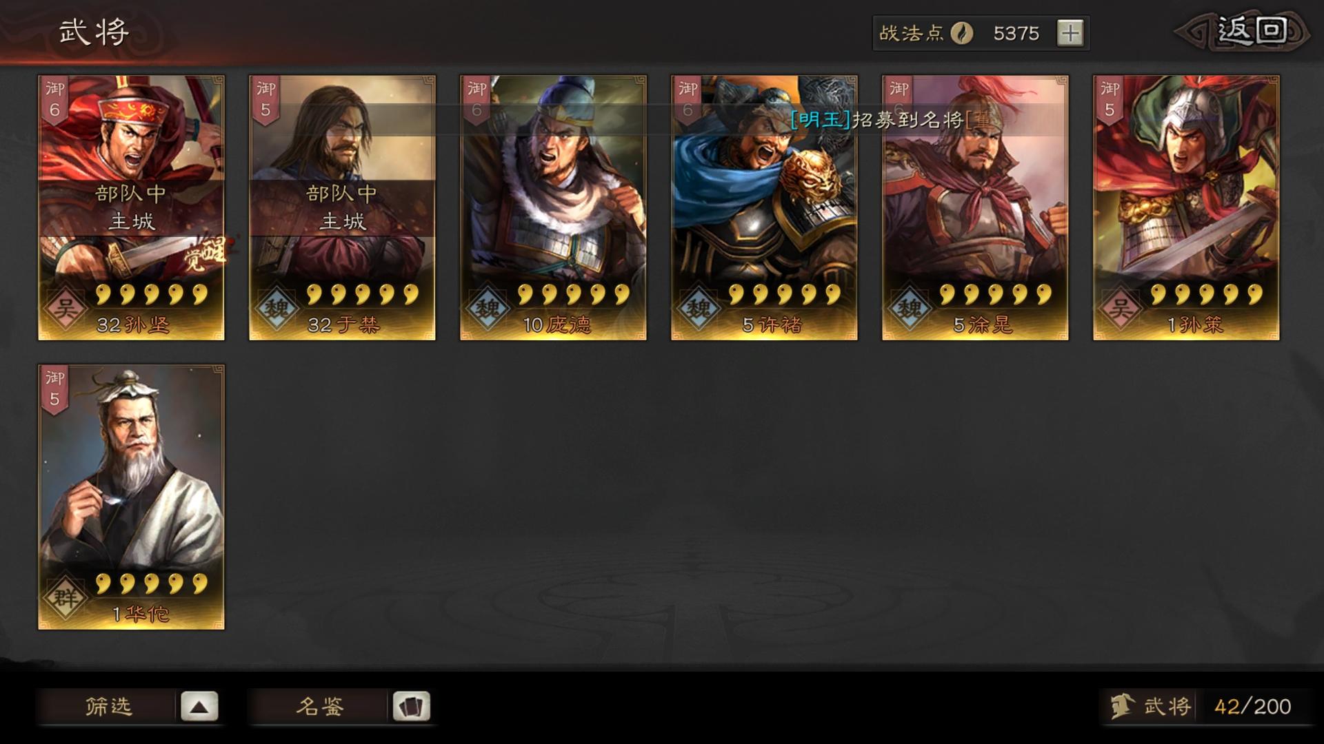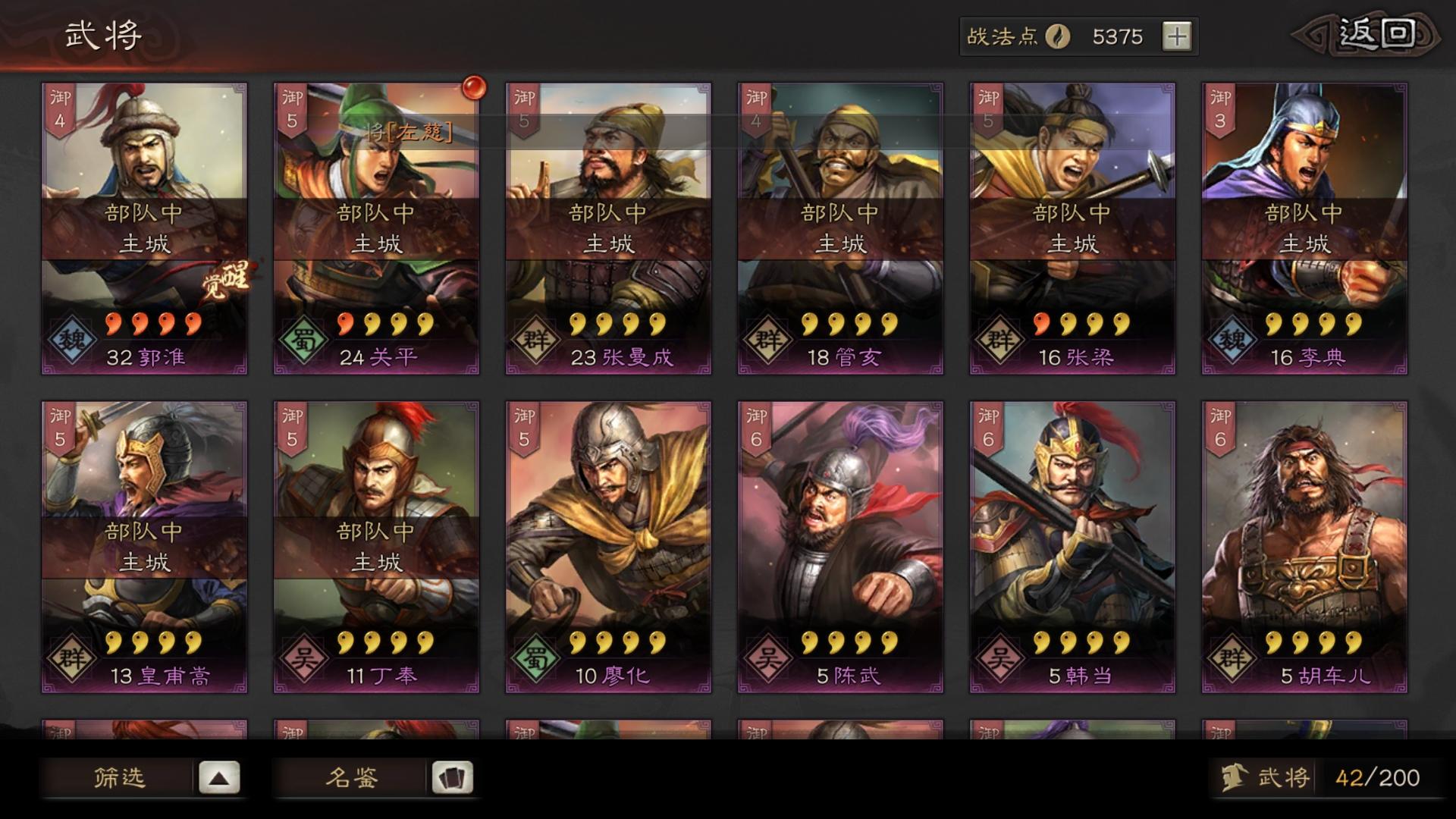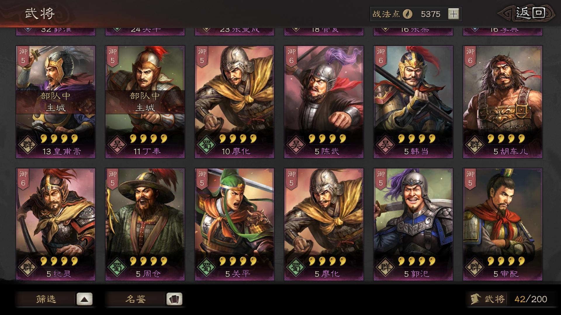 s1月卡党 不太会配将武将基本都留着了 战法也没敢随便分解 各位大佬帮我看看如何配出个能玩的2-3队,谢谢了!!