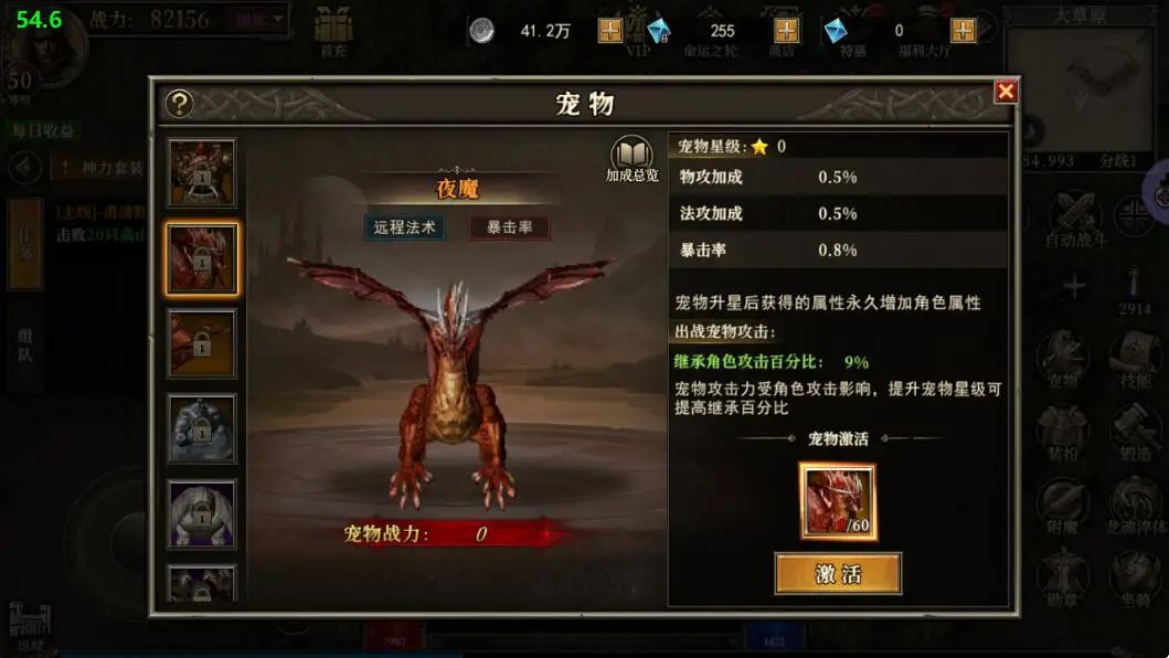 宠物养成:宠物不仅可以陪伴玩家战斗,还能通过培养提升实力,成为玩家不可或缺的得力助手。