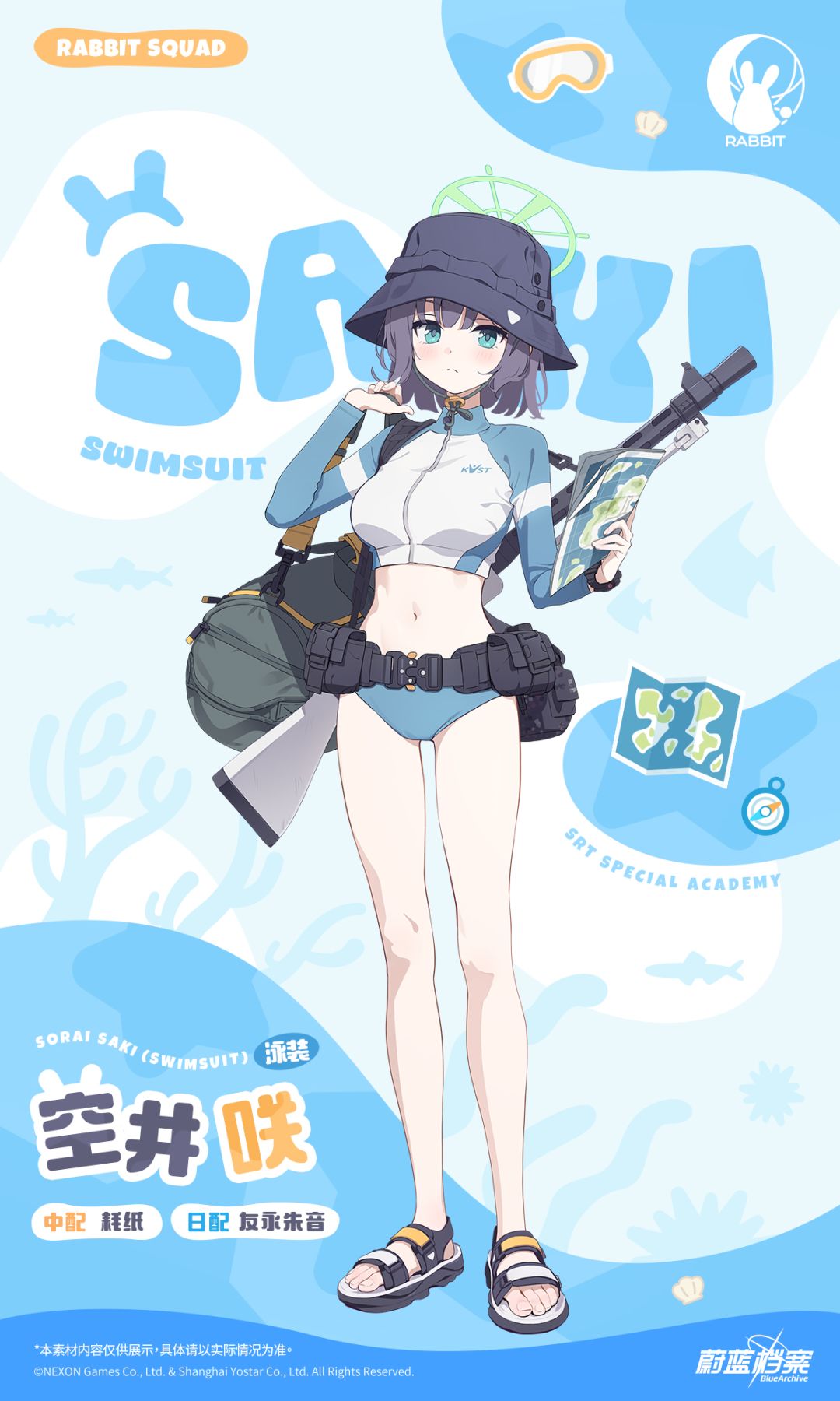 即使在潜入行动中,咲依然维持着重视教学手册的风格,将战斗所需的装备全都装进了背包。就算穿上了泳装,她那一板一眼的性格似乎也没有丝毫改变。