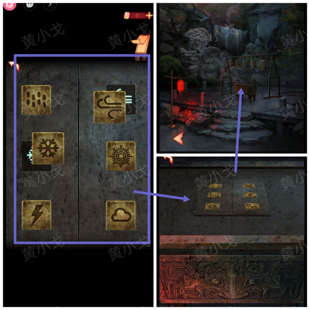 1.点击青铜鼎上的机关,把木块移动到正确的位置
