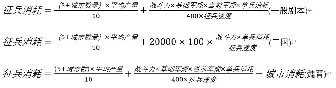 首先是支出。紧急募兵的消耗计算公式如下。
