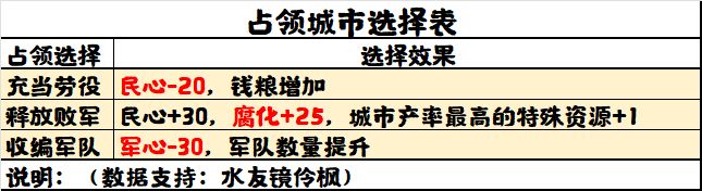 在占领城市后,以下三个选项也会带来不同的收益。