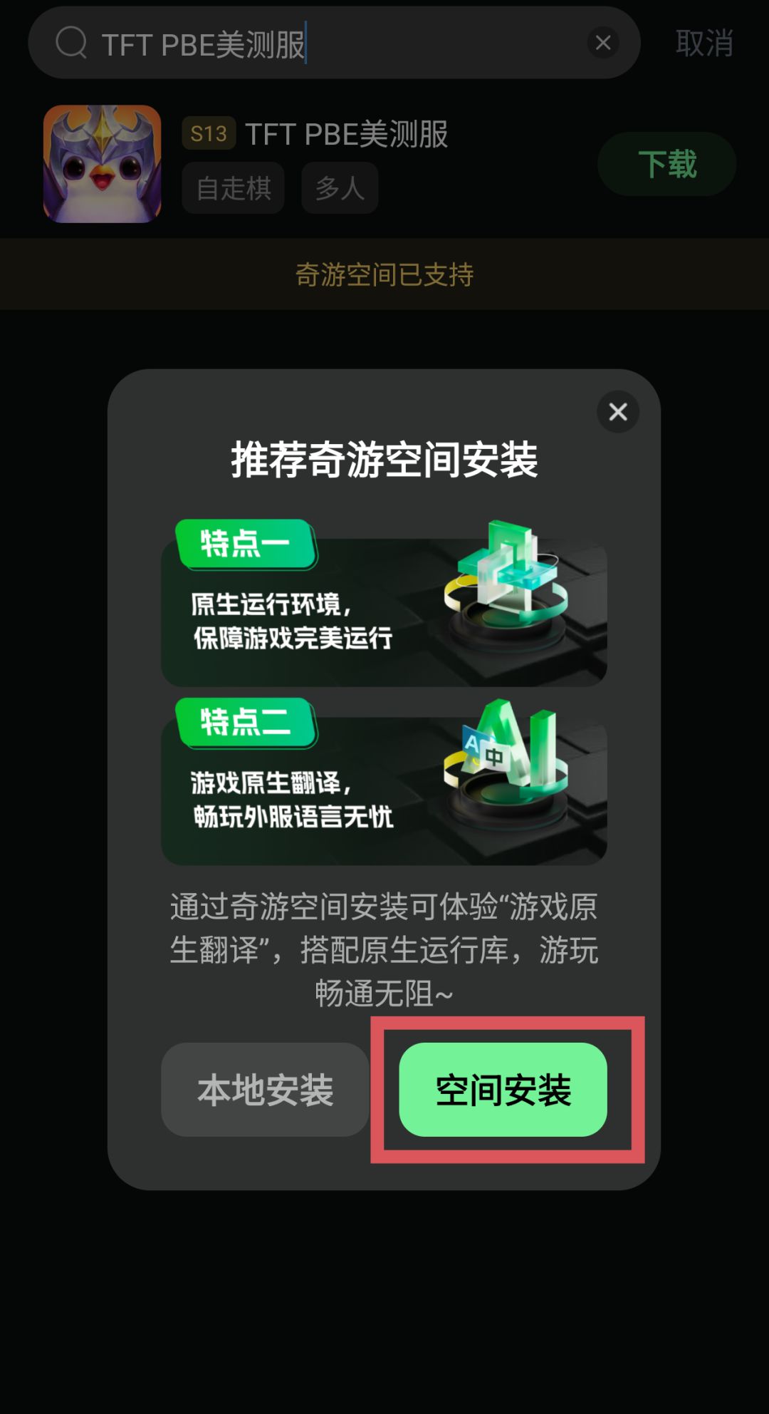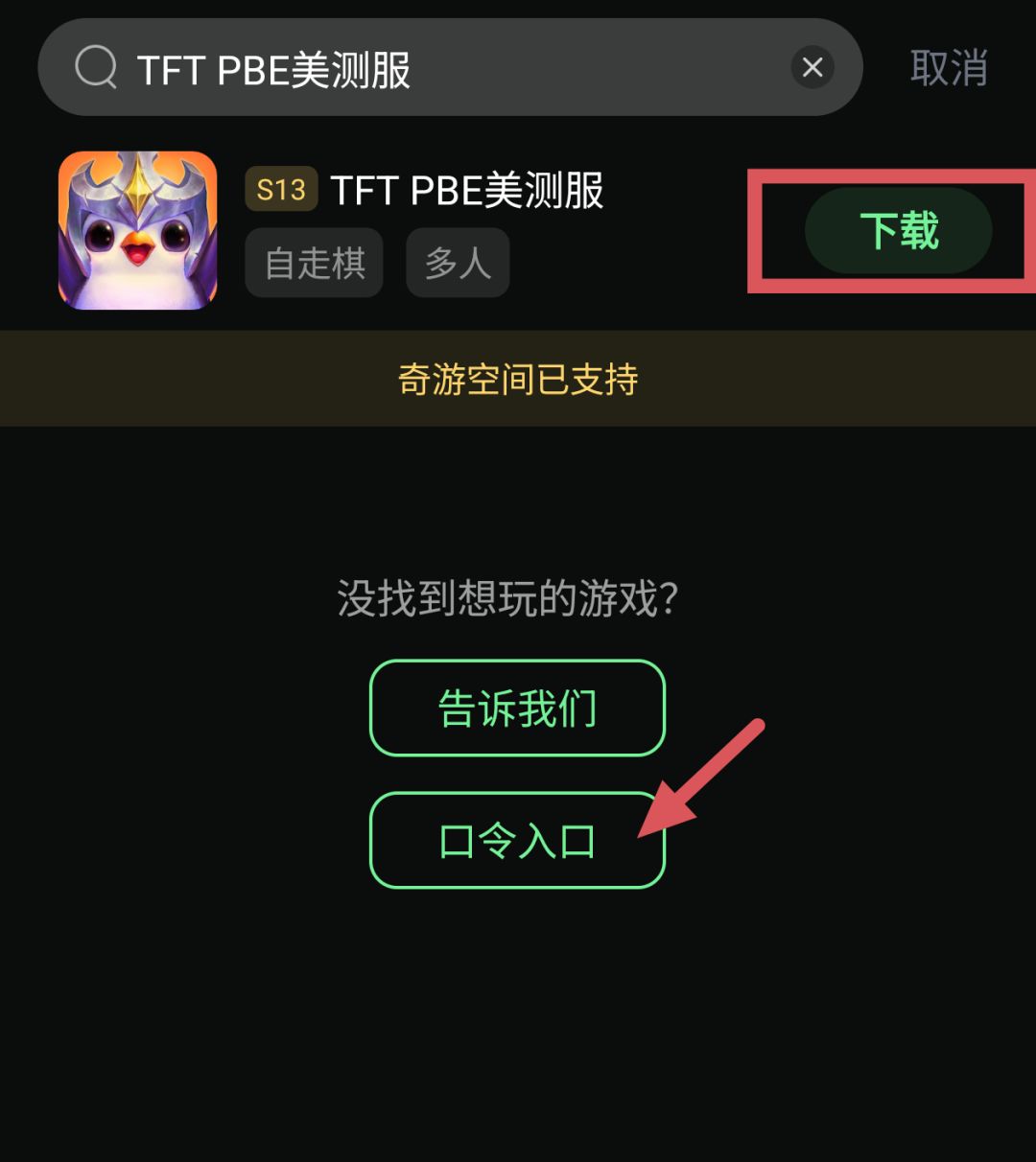 第二步:安装好奇游手游加速器后,搜索【TFT PBE美测服】,点击下载即可安装游戏。