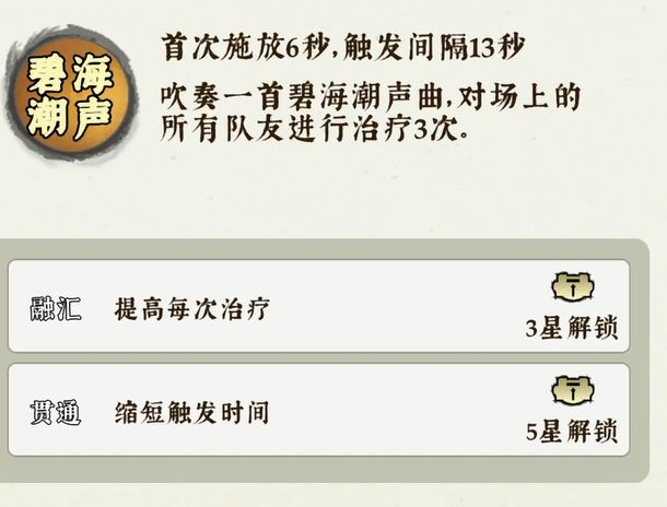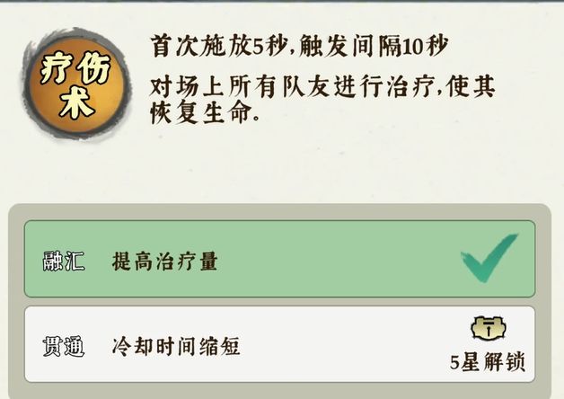 首次释放5秒CD,后续10秒CD 升级到5星后 可以全场5秒CD,大大提高奶量。