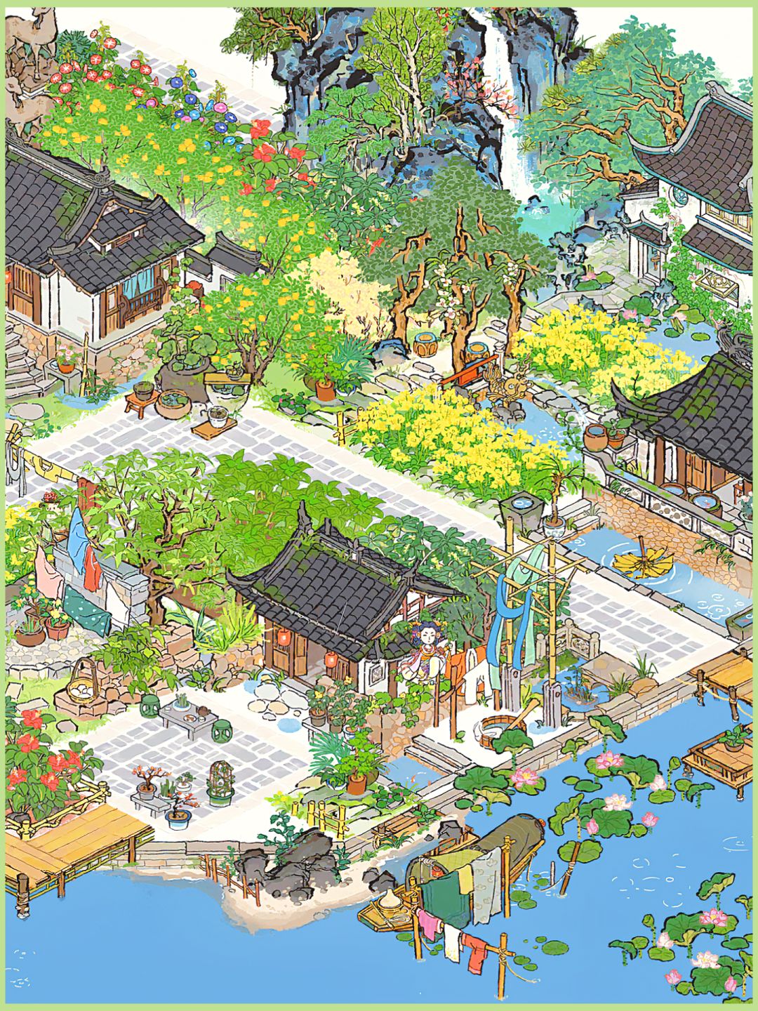 烟雨画池美炸天!树荫亭下浣衣,谁不想住