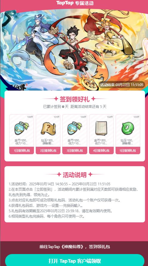 亲爱的仙友们,TapTap论坛专属签到活动已经上线