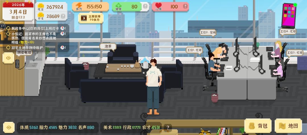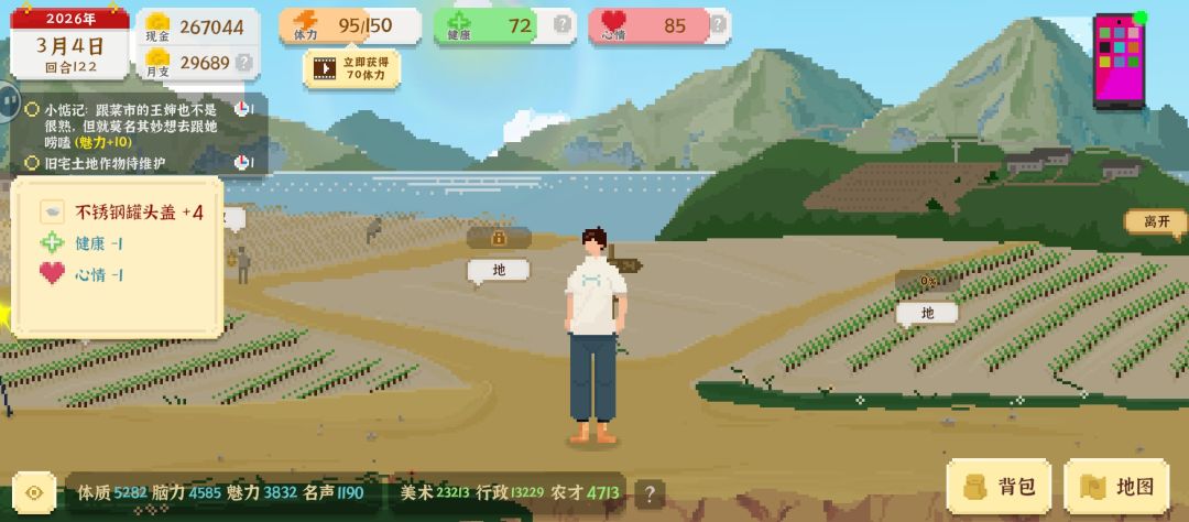 3、前期去哪里一定要计算好体力消耗,前期体力太重要了!少搬砖,容易受伤导致减去更多健康值。