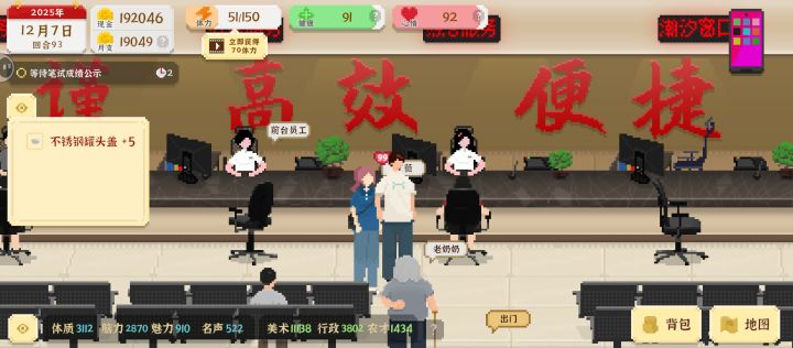 ★前期:开局的话最好要选美术方面或者农业再或者赌彩票,这样子赚钱很快,不推荐直接先考公!。当你有了工作室后,每天赚的钱非常多(选了美术一定要去买那个芯片!),你搞农业的话,最开始要多种点水果,集市买水果超赚钱(什么时候卖,你老妈会给你提示)并且随着你名声的增长你的水果也会越来越贵。还有重要的一点,每天跑图的同时把垃圾收干净,这样零花钱就有了