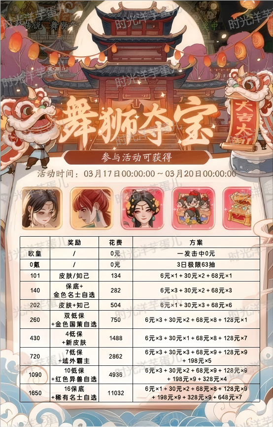 【舞狮庆典】李师师&妇好等各档位礼包方案一览