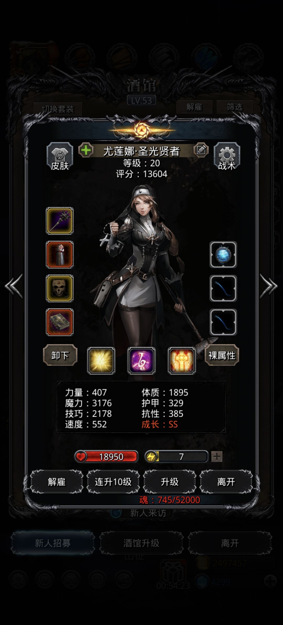 刚需幻境减速,技巧战利品优先给幻境,幻境技巧减速越多传猎输出时间越长打的越轻松(对自己幻境有自信,有绿龙极高技巧魔石的话可以把传猎换成输出套装直接结束战斗)