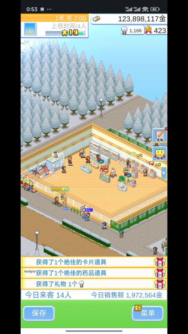 (三周目第1年冬季,继承了七个地区的45名顾客。游戏时间16小时,单日1300万销售额,全场无垃圾)