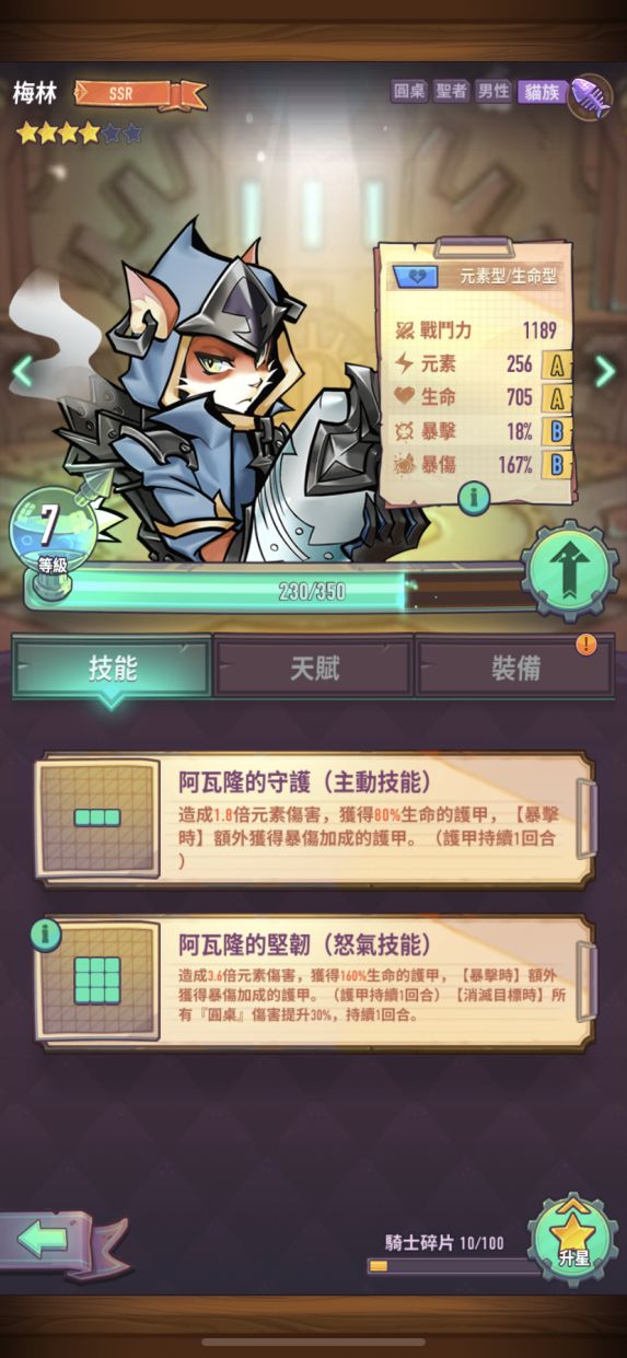 我怀疑这游戏角色设计是个猫党,这游戏的猫族角色都很好用,必定暴击和无视护盾功能性比较强,领地荣誉免费兑换,稳定6星。多次攻击的角色都好用,主要怒气手。