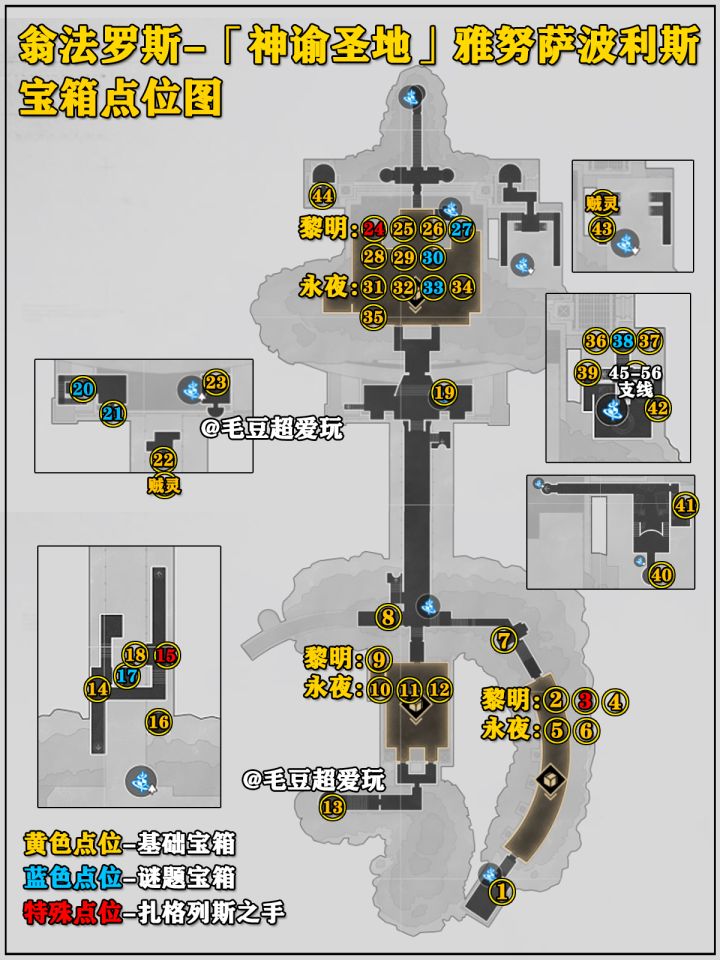 由于图片上限,上篇含1-12号宝箱的详细获取路线,13-44号宝箱请移步中/下篇。