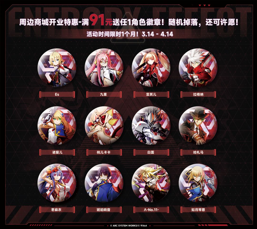 - 限时赠品:3.14~4.14期间,满91元送任1角色徽章~