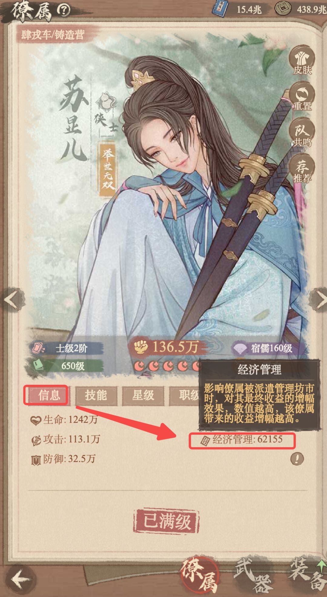 小贴士:合理利用武选司和装备配置,快速提升僚属的经济管理能力。