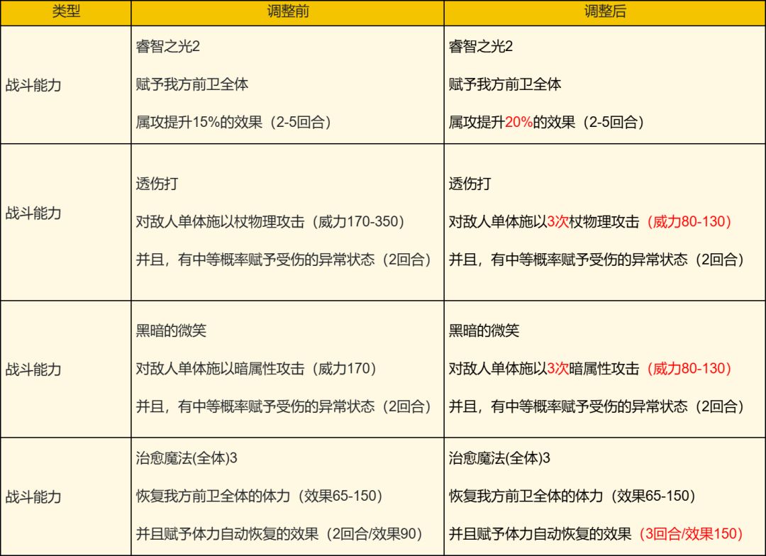 对本期闪光的旅人“斯特多”进行了性能调整,详情如下: