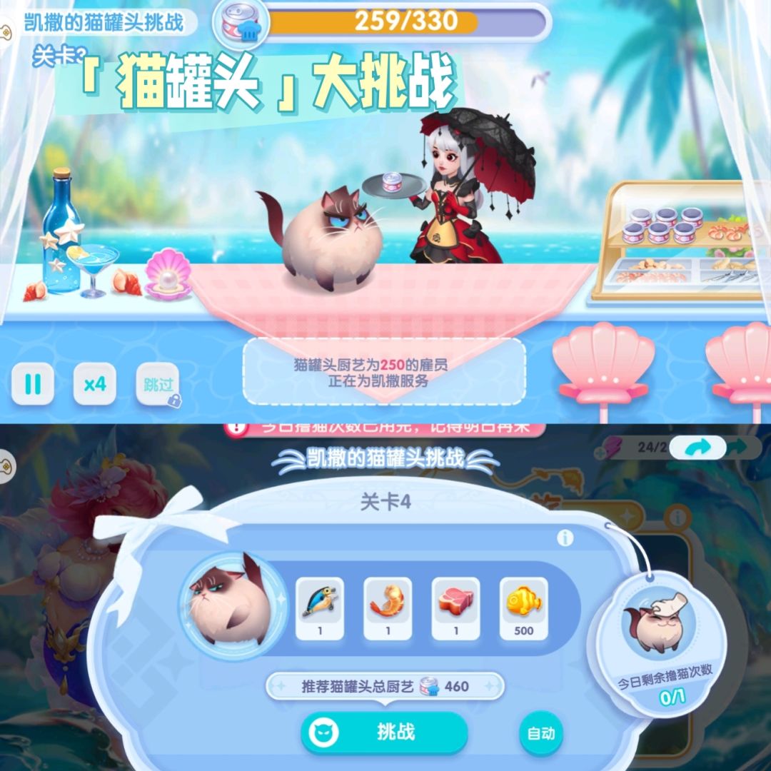 ✨猫罐头挑战:安排的店长的员工进行猫罐头玩法的挑战,可以获取鱼饵用于出海海钓。