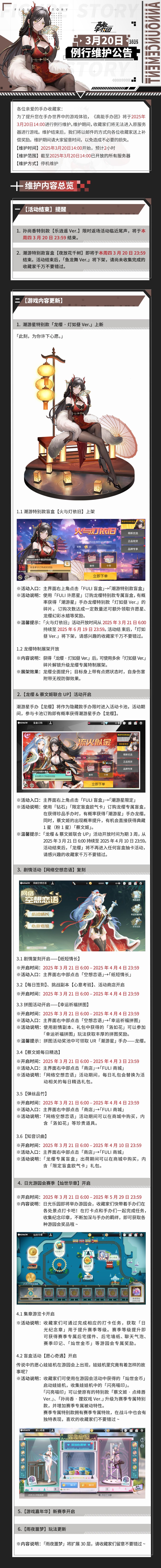 各位亲爱的手办收藏家:为了提升您在手办世界中的游戏体验,《高能手办团》将于2025年3月20日进行例行维护。详细公告内容请点击下方图