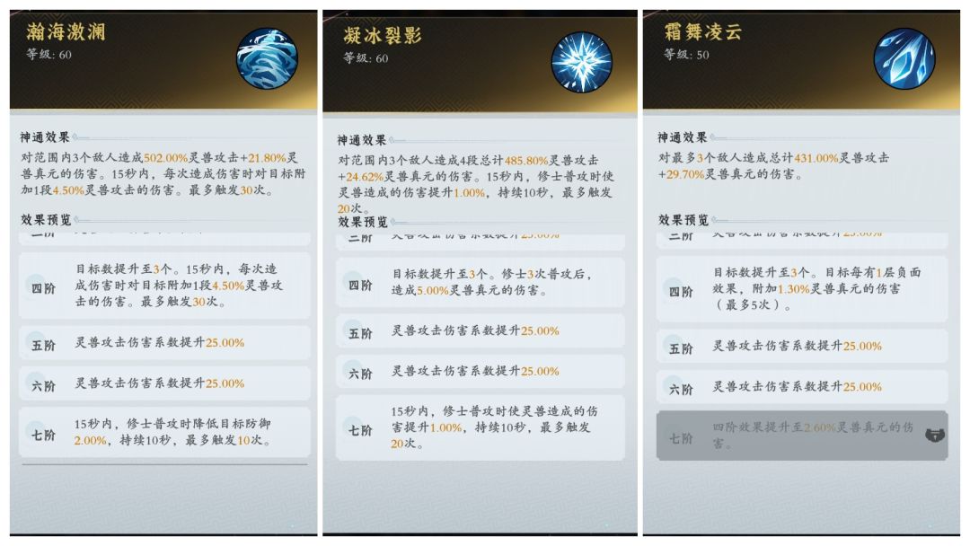 1技能是单体攻击,同时增幅灵兽自身的攻击力。