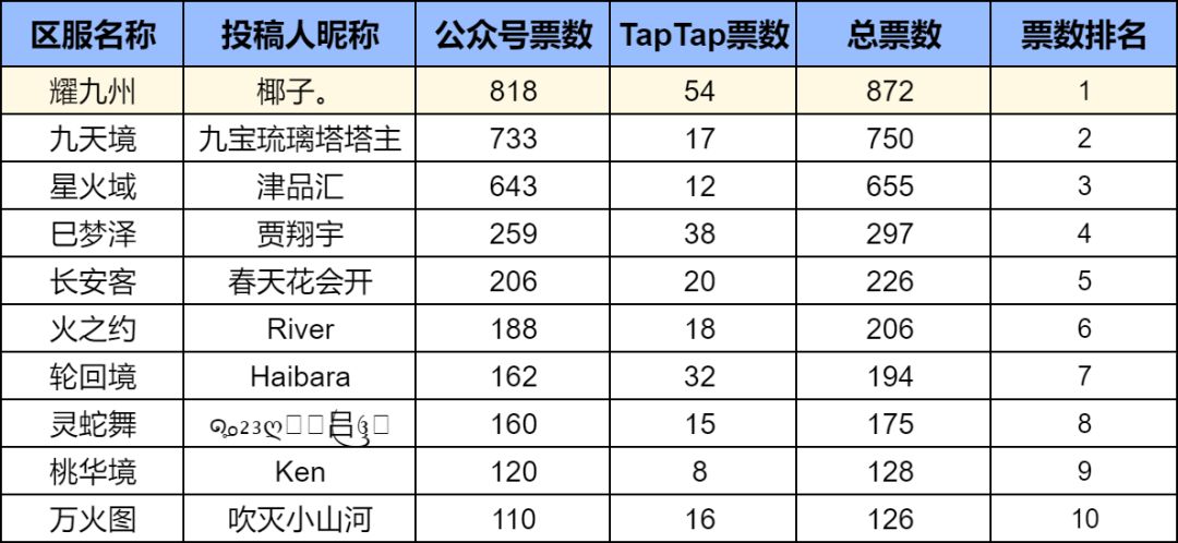 恭喜以上TOP10区服名的投稿玩家,每人获得50元京东卡奖励!