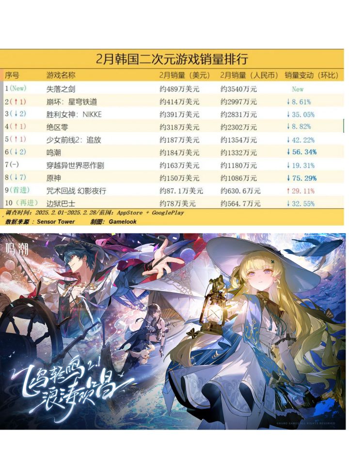 鸣潮2月韩国月活跌落前十