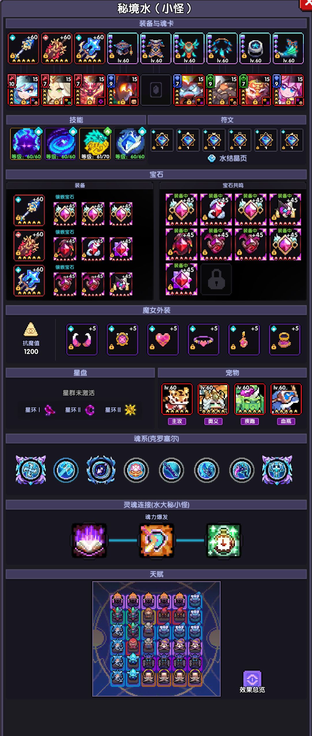 对于魂点不够用的同学,在满足穿透和暴击的前提下,各项属性平均分配点取,或者可根据自己面板来自己调整加点~