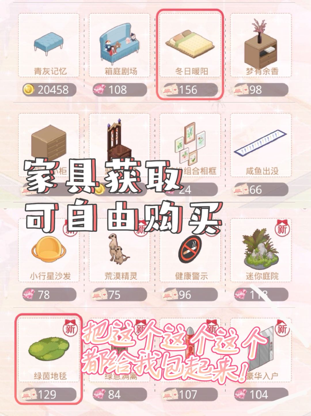 - 非氪金党建议攒金币和心意币购买商城家具,优先购买限时折扣款。