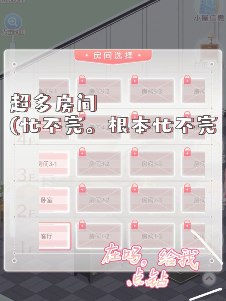 2. 扩建房间:初始仅开放客厅,消耗钻石(完成每日任务获取)逐步解锁其他区域。
