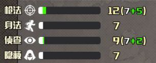 幸存者的四个主要属性由枪法、身法、侦查、隐蔽组成。如下图所示: