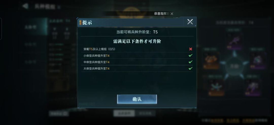 兵种的升阶主要是通过兵种模组的升级来提升,装备5件同阶兵种模组,即可让该兵种升阶至对应等阶。