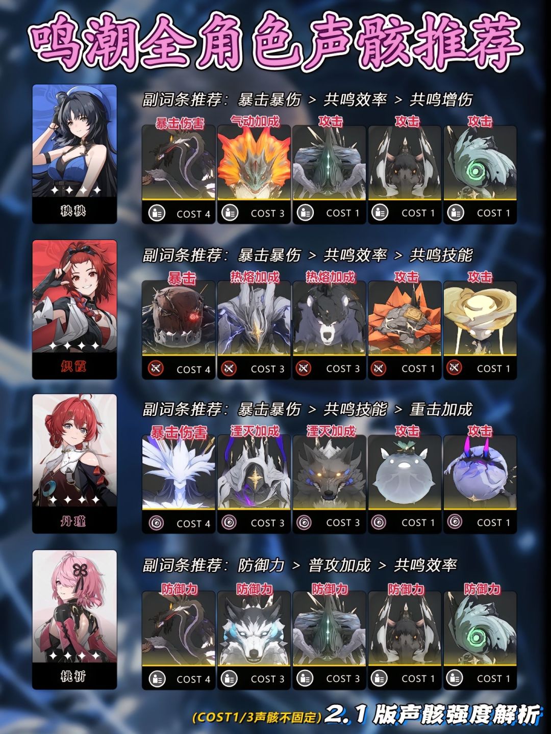 鸣潮2.1全角色声骸推荐参考