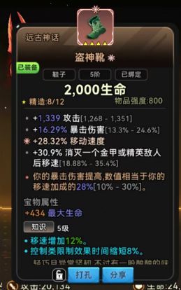 其次风神天赋里 有大步流星 根据你当前移速 提供伤害加成(这个词条我没太弄明白是百分比还是数值,总之加就完了一个移速词条是双增伤)投掷流派又不缺暴击所以这个鞋子绝对的核心中的核心。