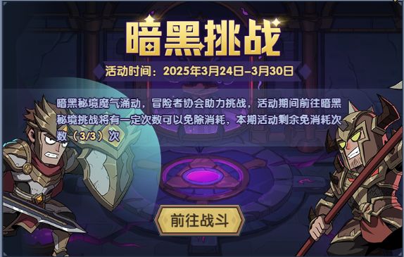 活动期间挑战暗黑秘境优先扣除免消耗次数,快去挑战吧~