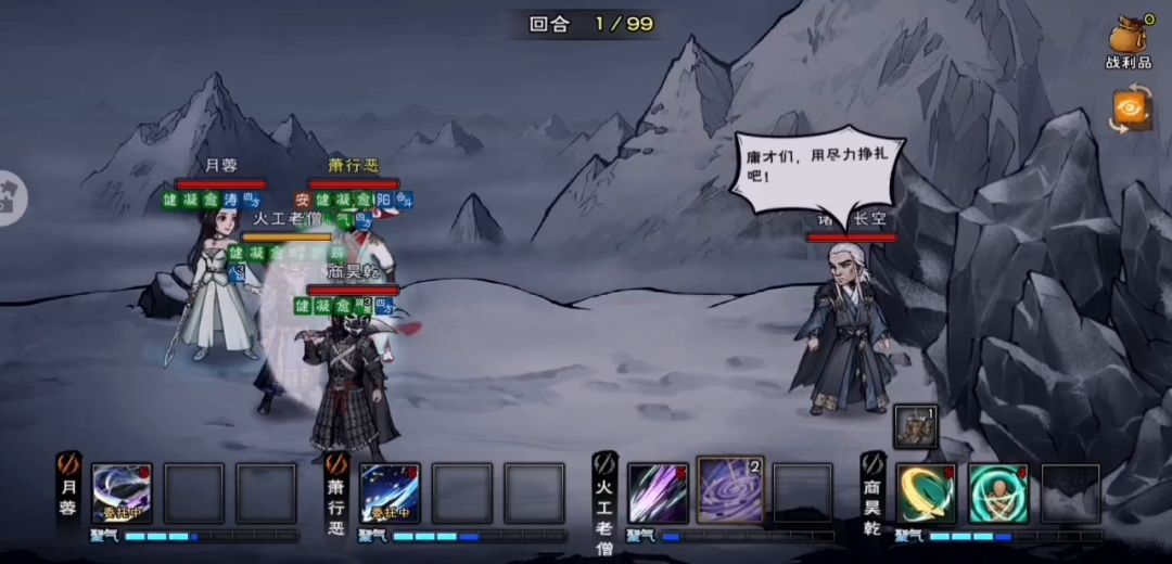 小技巧:主2回合末放完大如果风残血,可以等林攻击完和商换位(防止下回合吃风火buff放不出技能),让商收割,非必要。