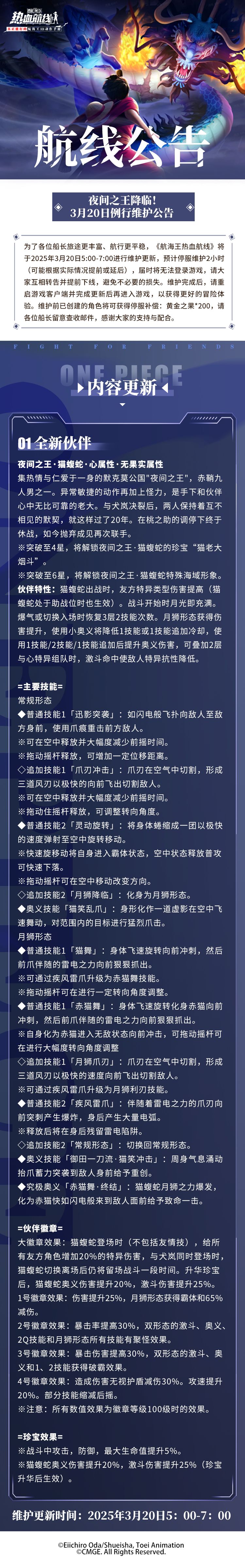 每周例行维护,夜间之王·猫蝮蛇登场,月狮形态,赤猫舞终结!周年庆预热持续进行中,绝版奥义图限时放送!