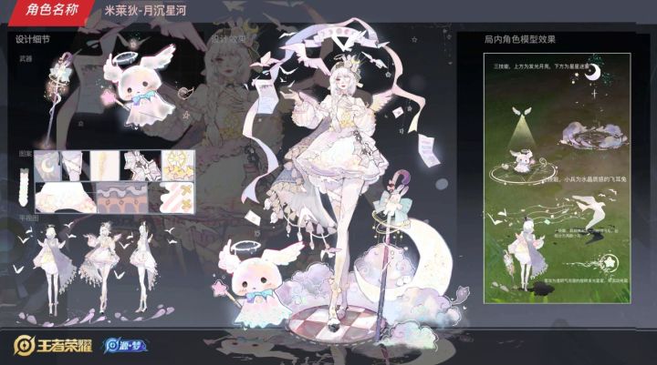 此次的设计可谓匠心独运,彻底摒弃了传统形象中的暗黑风格,转而拥抱明亮光鲜的全新格调。整体设计巧妙融入月亮、星星、兔子与魔法等梦幻元素,每一处细节都仿佛在编织着一个充满奇幻与浪漫的童话。粉嫩的浅色调如同一缕春日暖阳,温柔地包裹着米莱狄,使她仿佛从童话书里走出的精灵,周身散发着梦幻而甜美的气息。