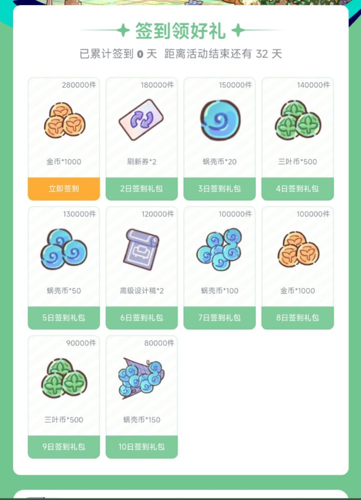 2、3月21日起!连续三日!每日十点登录即送翠蝶设计稿*3、初级设计稿*3、三叶币*500!