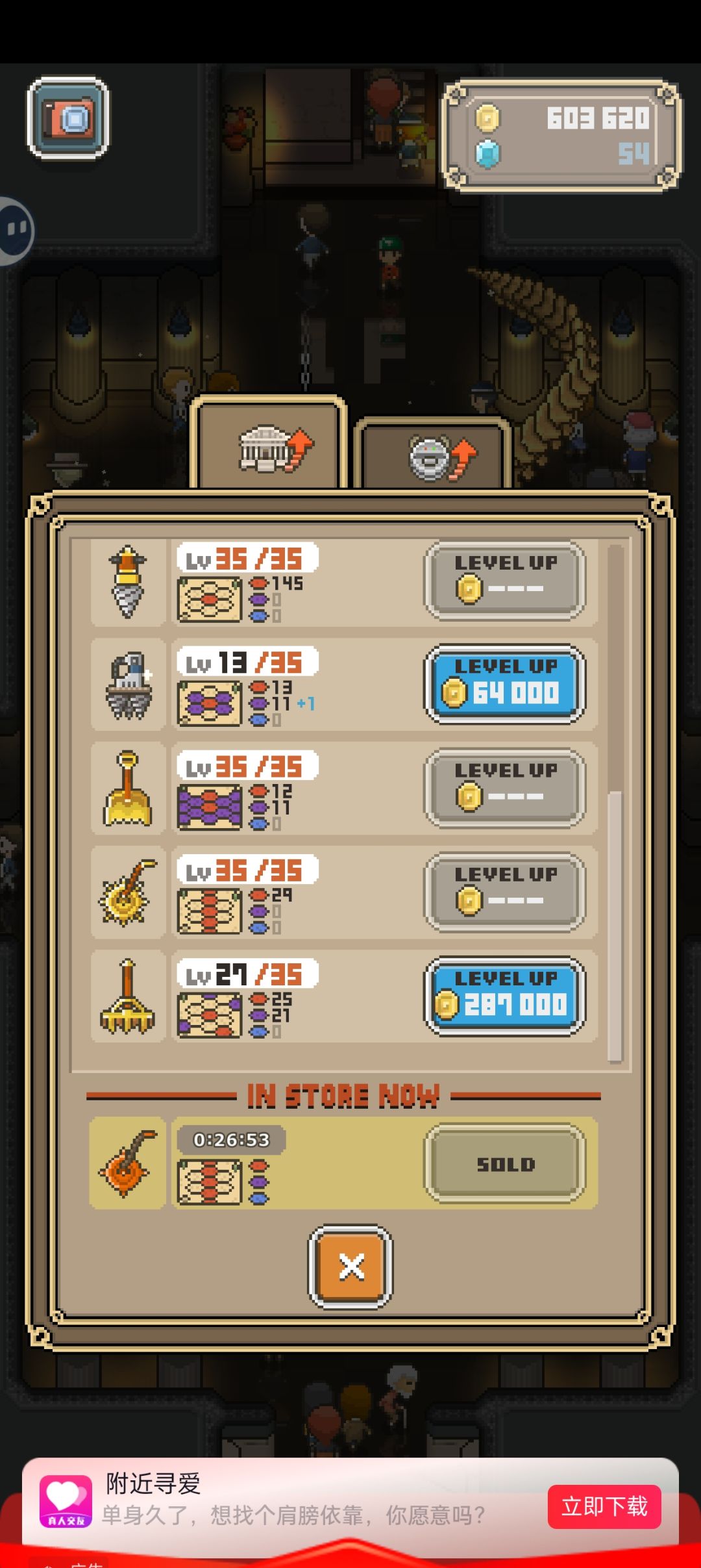 工具第一个表示参观人数,级别越高,参观人数越多,等于钱越快,第二个就是挖掘次数,挖掘工具一共6个,可以计算总攻击力都是145没区别,比如第一个25+20*6=145,第四个12*2+11*11=145,区别在于适用于不同地块,开局送的铲子前中期就完全足够了,第二个钻头主要用于后期难度大的地块很硬的,可以1到2下挖到底,像图中一样,隔一列开地图找化石。第四个铲子用来刷地图挖200%进度,整齐控可以用第五个铲子,一列一列挖![[表情_斜眼笑]](https://img-tc.tapimg.com/market/images/d1b1dcc88719f6c9a639728cde152c4b.png)