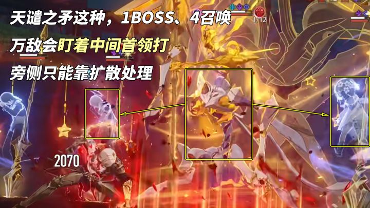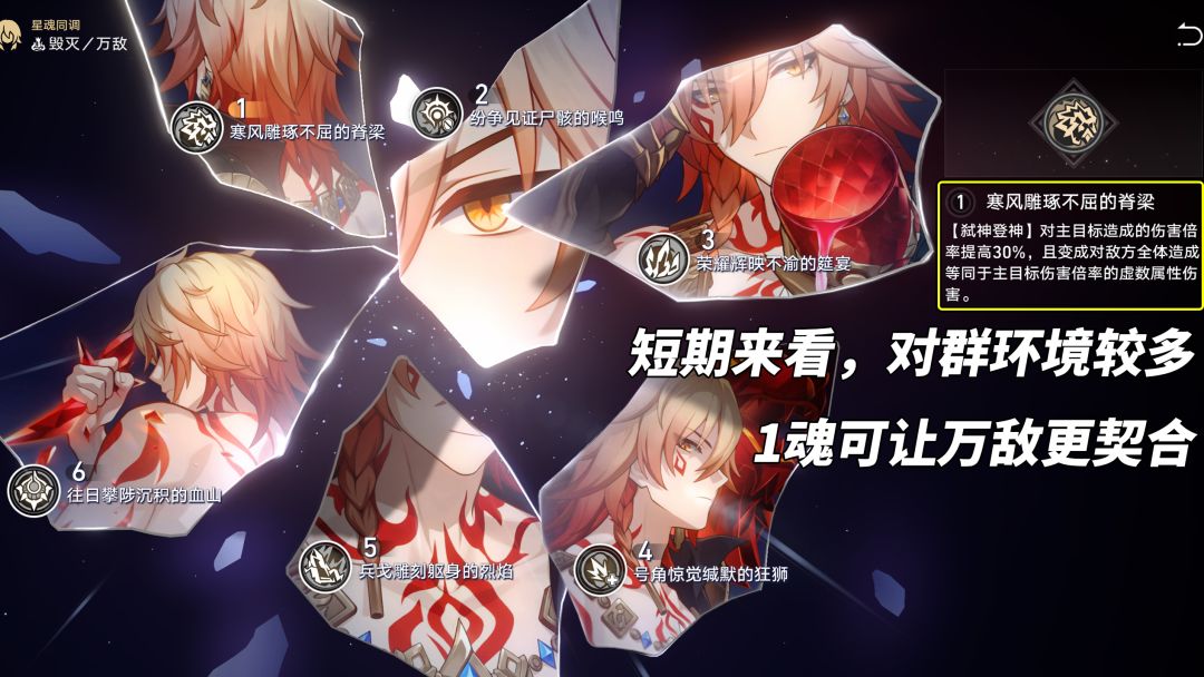 若你有条件追万敌星魂1,将有极大改善,输出占比近一半的‘弑神登神’将从扩散进阶为更高伤害且对群的模式,能很好克制此类喜欢召唤额外单位的BOSS。