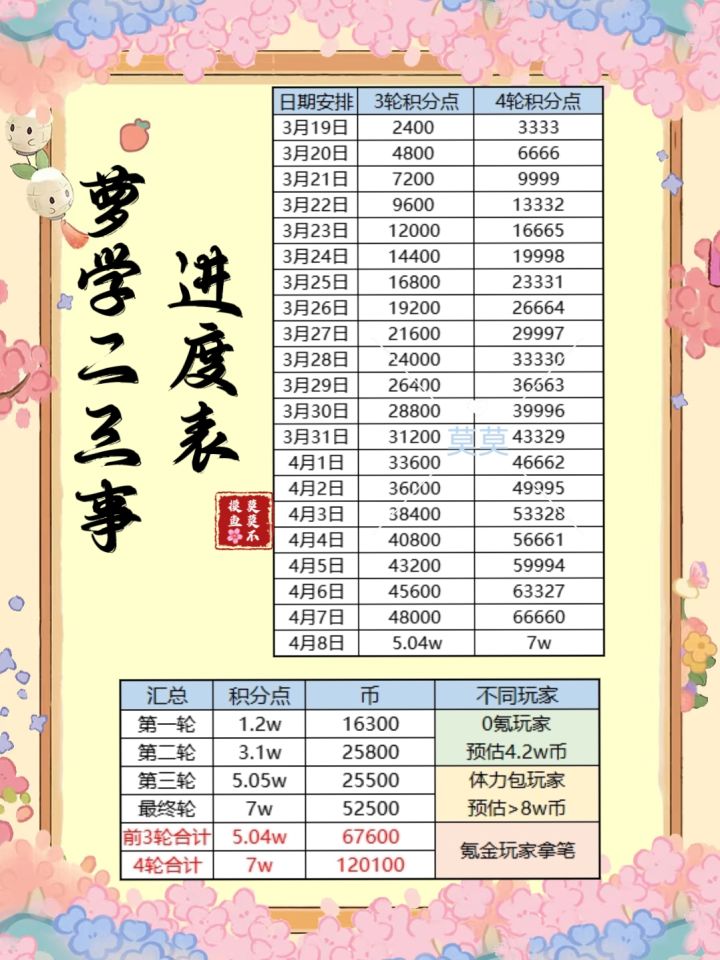 3️⃣氪金玩家:需要走完4轮,拿下神笔。理智消费,不作建议。参考4轮积分点,精打细算。