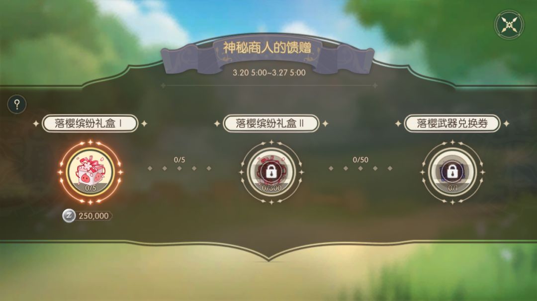购买1次之后将解锁下一档商品:「落樱武器兑换券」